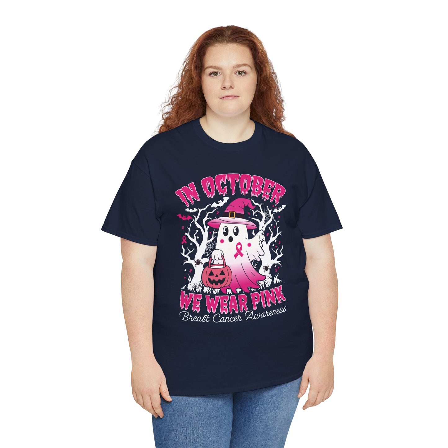A powerful and meaningful T-Shirt design for Breast Cancer Awareness Warriors. The message 'In October We Wear Pink' is bold and inspiring, perfect for those who want to show their support and spread awareness. This tee can be worn proudly during Breast Cancer Awareness Month and at fundraising events.